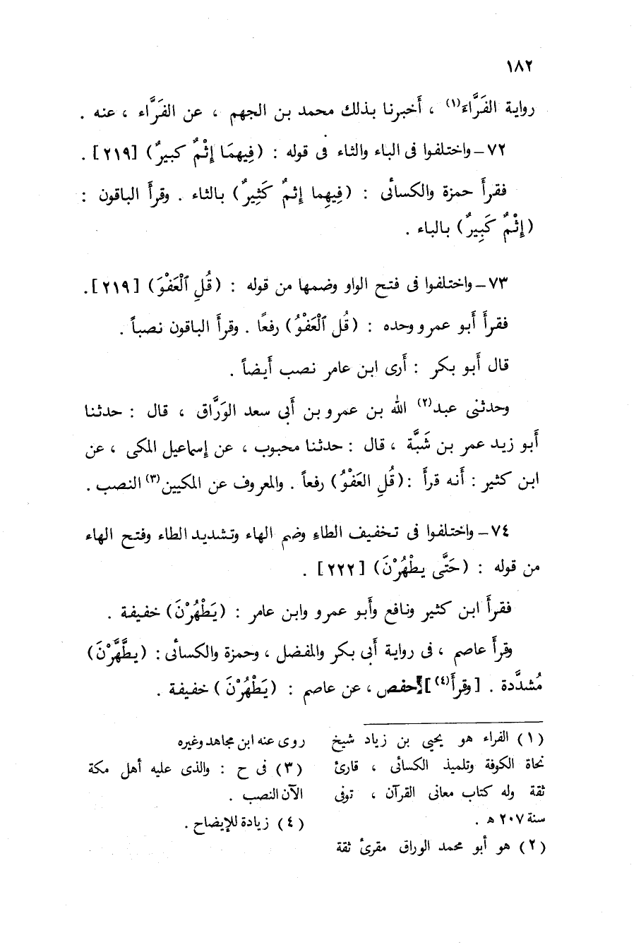 73 - وَاخْتلفُوا فِي فتح الْوَاو وَضمّهَا من قَوْله {قل الْعَفو} 219