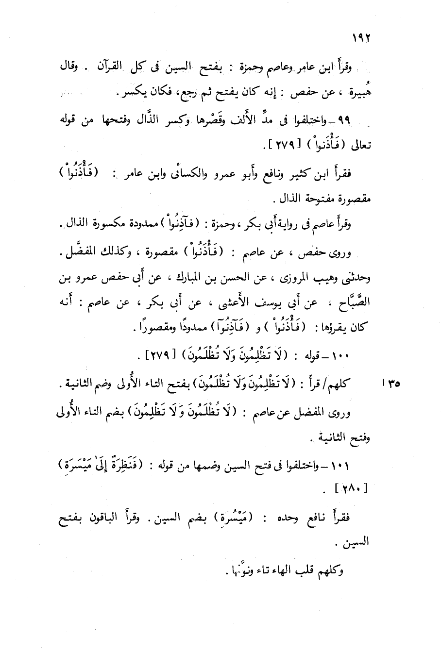 101 - وَاخْتلفُوا فِي فتح السِّين وَضمّهَا من قَوْله {فنظرة إِلَى ميسرَة} 280