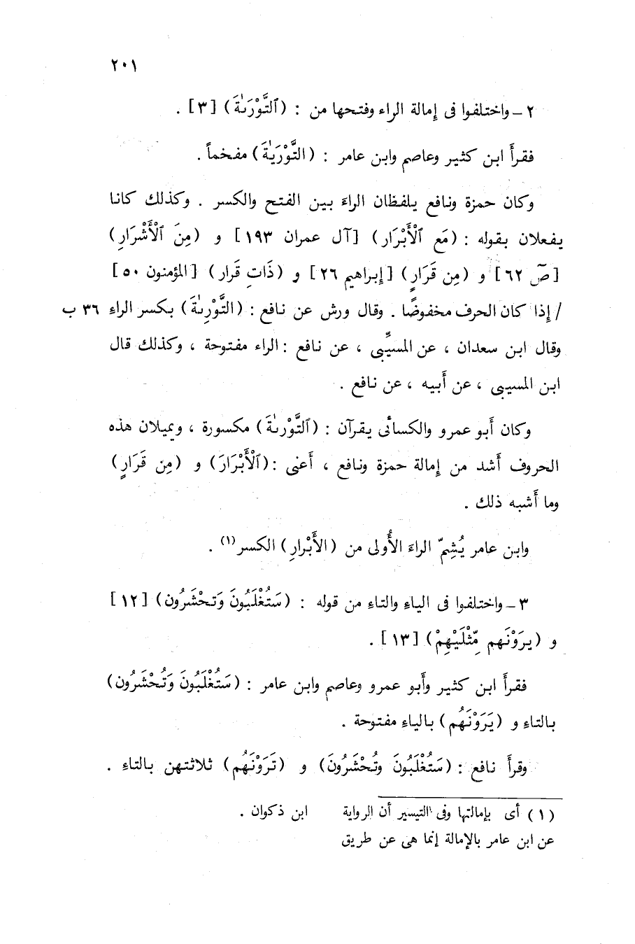 2 - وَاخْتلفُوا فِي إمالة الرَّاء وَفتحهَا من {التَّوْرَاة} 3