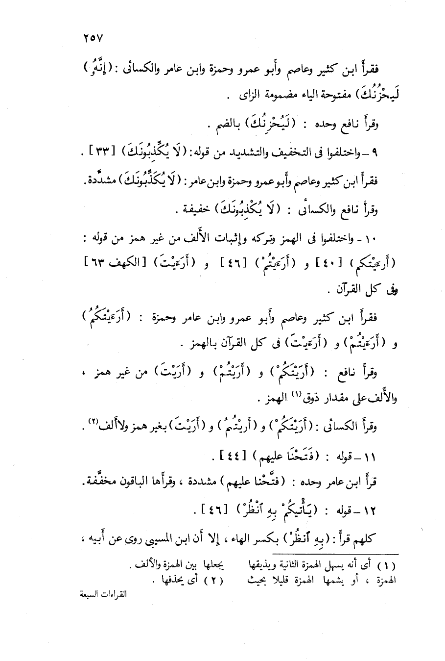 10 - وَاخْتلفُوا فى الْهَمْز وَتَركه وَإِثْبَات الْألف من غير همز من قَوْله {أَرَأَيْتكُم} 40 و {أَرَأَيْتُم} 46 و {أَرَأَيْت} الْكَهْف 63 وفى كل الْقُرْآن