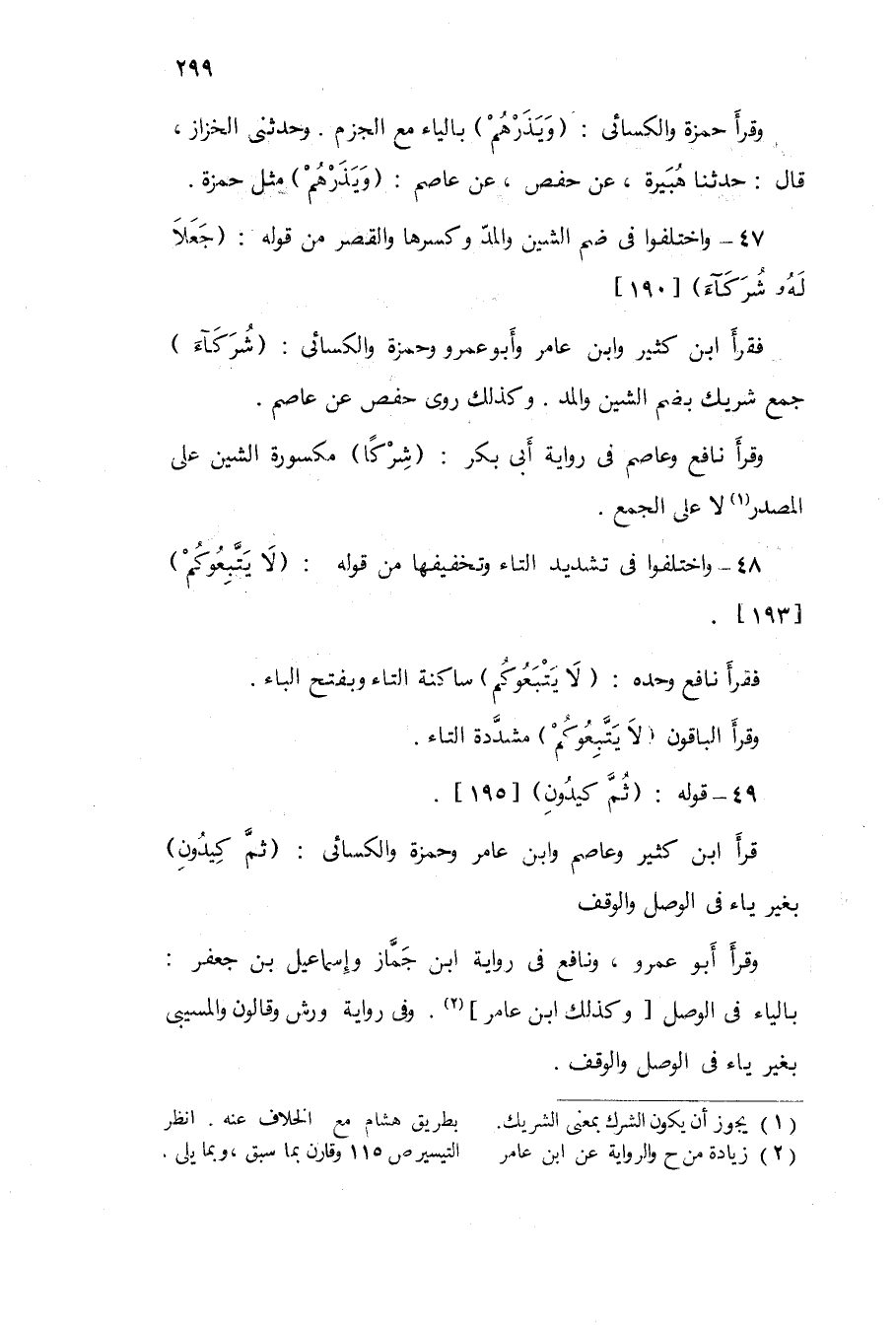 49 - وَاخْتلفُوا فى التَّشْدِيد التَّاء وتخفيفها من قَوْله {لَا يتبعوكم} 193