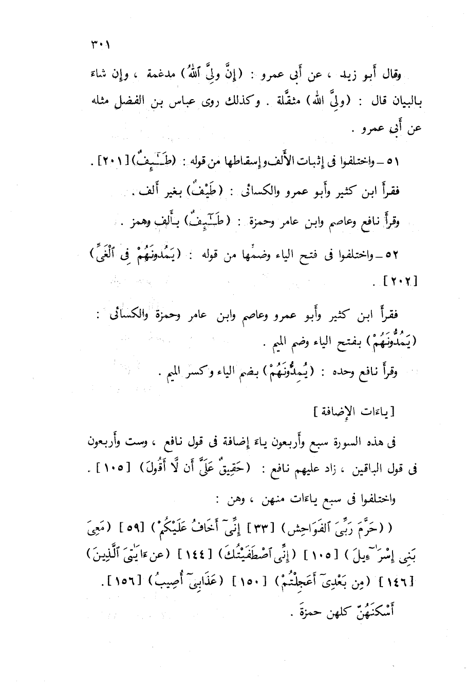 52 - وَاخْتلفُوا فى إِثْبَات الْألف وإسقاطها من قَوْله {طائف} 201