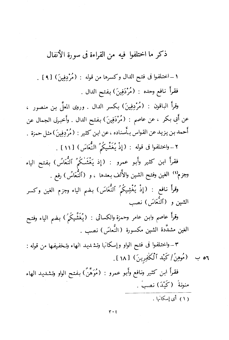 3 - وَاخْتلفُوا فى فتح الْوَاو وإسكانها وَتَشْديد الْهَاء وتخفيفها من قَوْله {موهن كيد الْكَافرين} 18