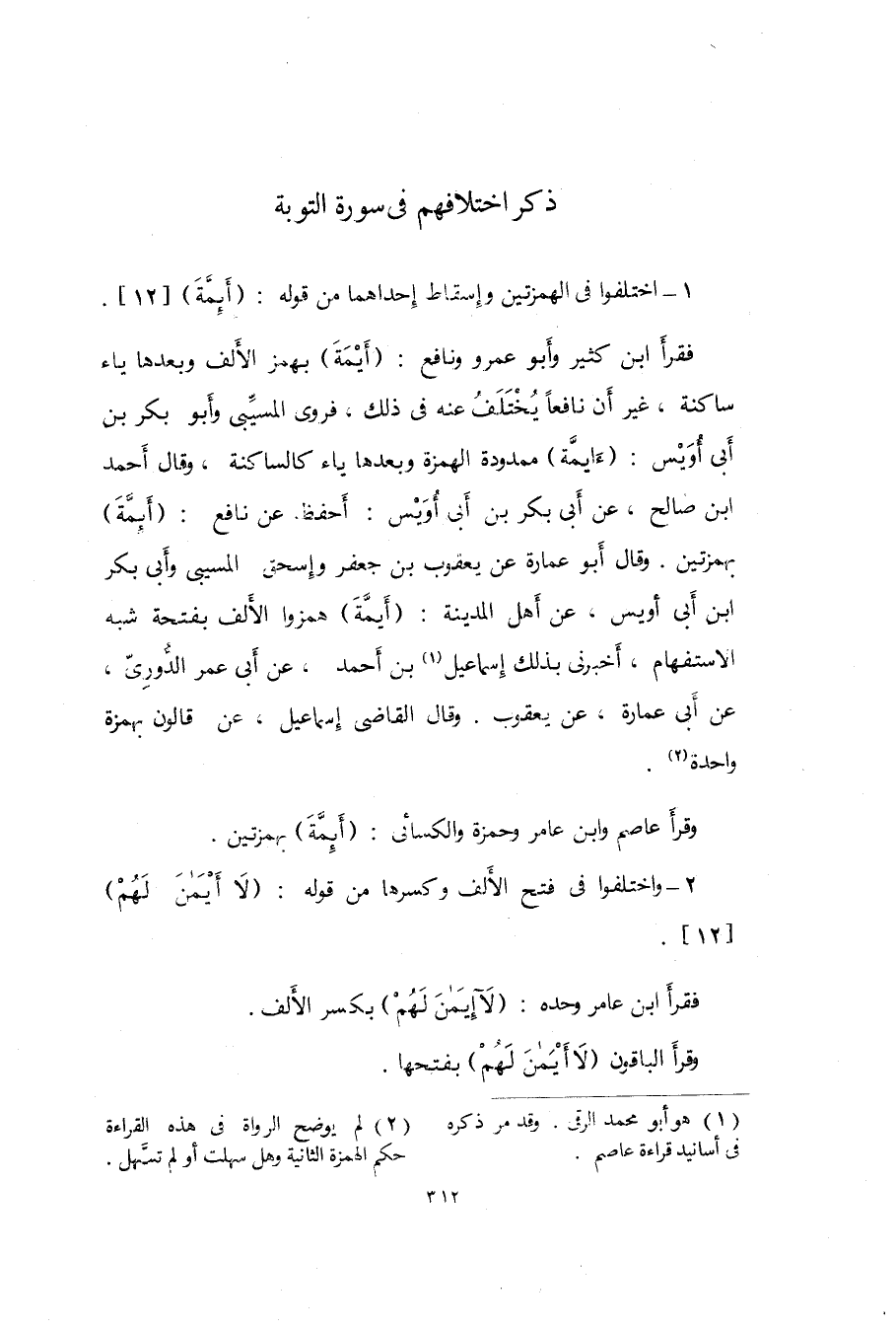 1 - اخْتلفُوا فى الهمزتين وَإِسْقَاط إِحْدَاهمَا من قَوْله {أَئِمَّة} 12