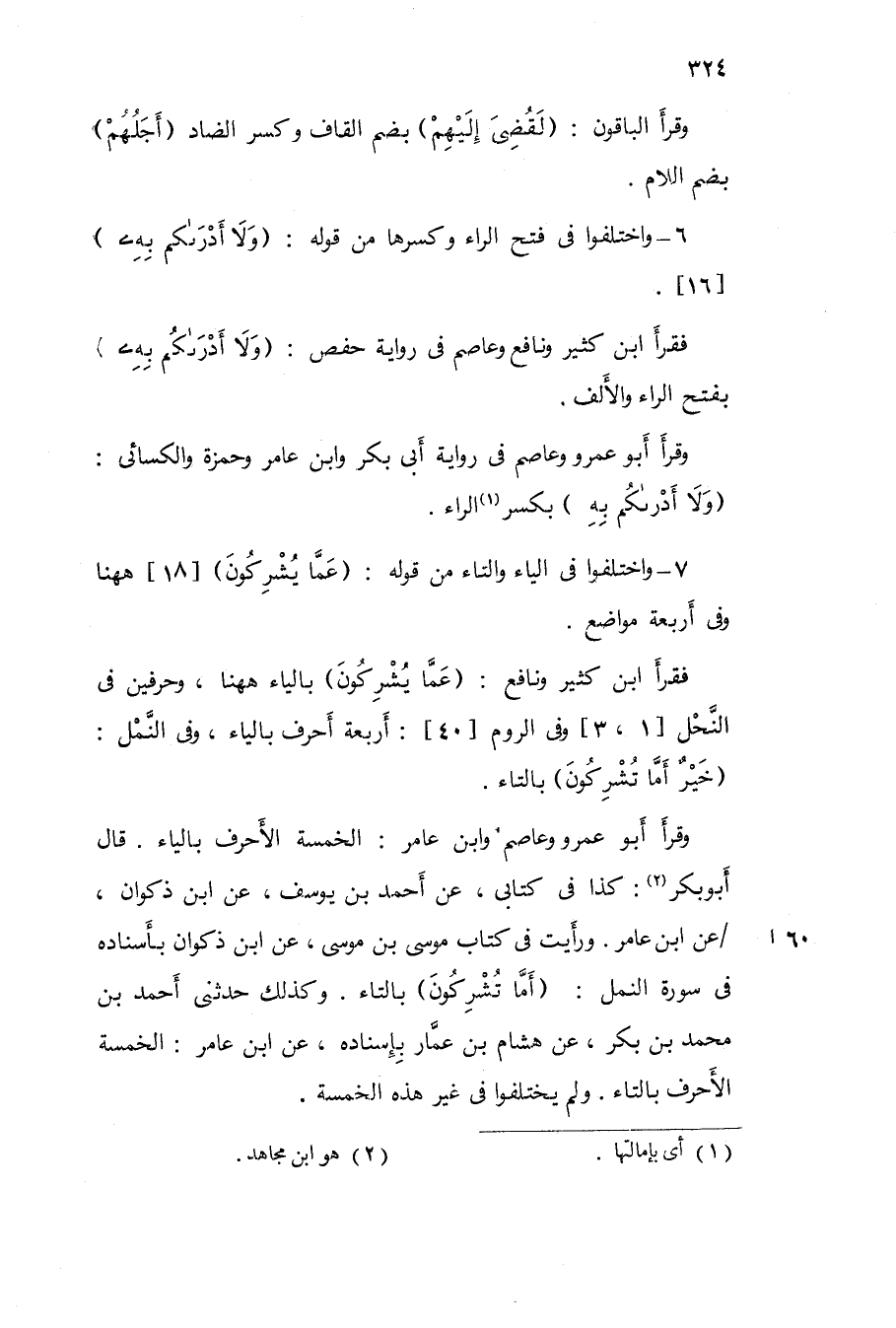 فَقَرَأَ ابْن كثير وَنَافِع {عَمَّا يشركُونَ} بِالْيَاءِ هَهُنَا وحرفين فى النَّحْل 1 3 وفى الرّوم 40 أَرْبَعَة أحرف بِالْيَاءِ وفى النَّمْل / خير أما تشركون / بِالتَّاءِ
