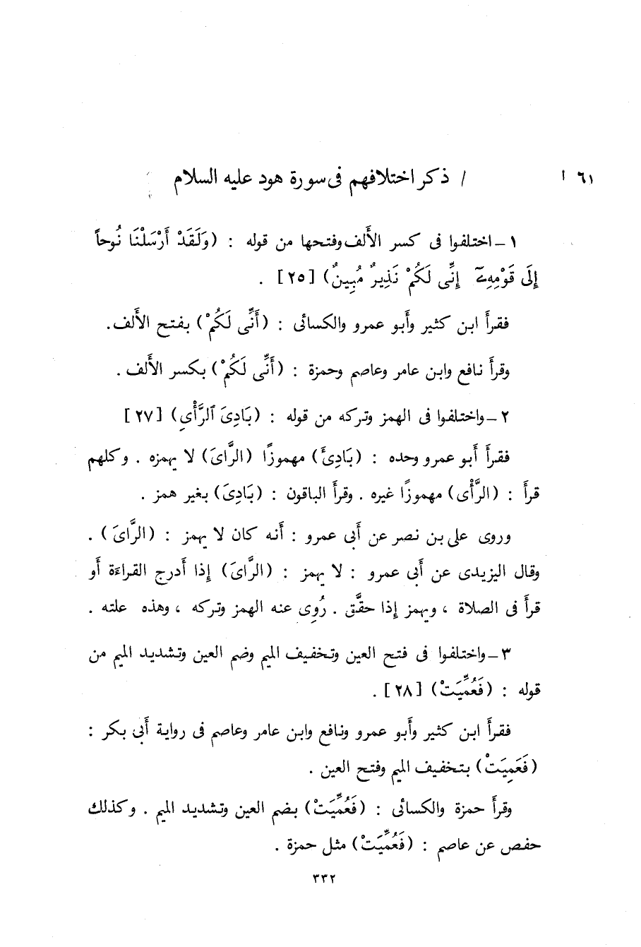 1 - اخْتلفُوا فى كسر الْألف وَفتحهَا من قَوْله {وَلَقَد أرسلنَا نوحًا إِلَى قومه إِنِّي لكم نَذِير مُبين} 25