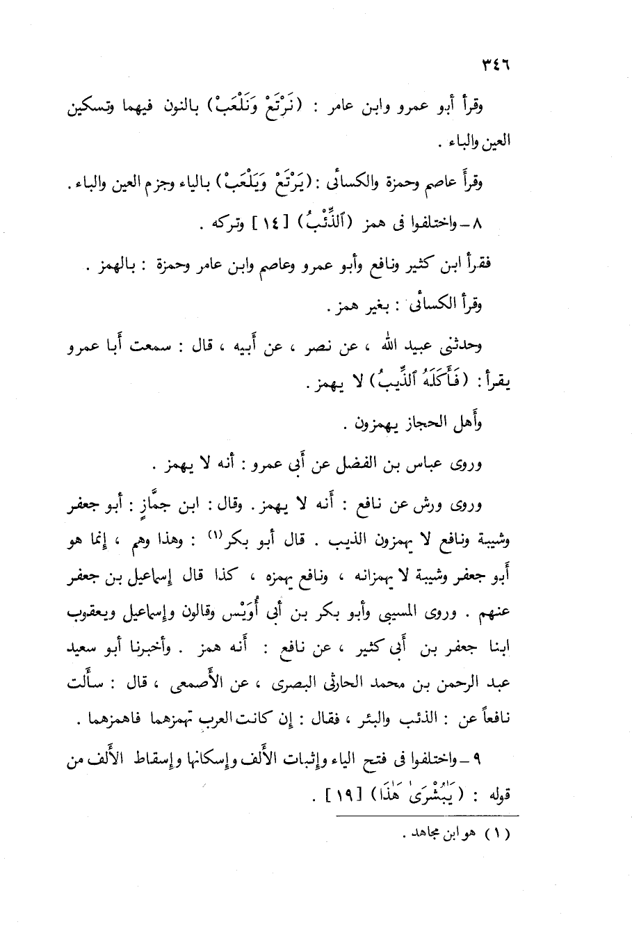 قَالَ أَبُو بكر وَهَذَا وهم إِنَّمَا هُوَ أَبُو جَعْفَر وَشَيْبَة لَا يهمزانه وَنَافِع يهمزه كَذَا قَالَ إِسْمَاعِيل بن جَعْفَر عَنْهُم