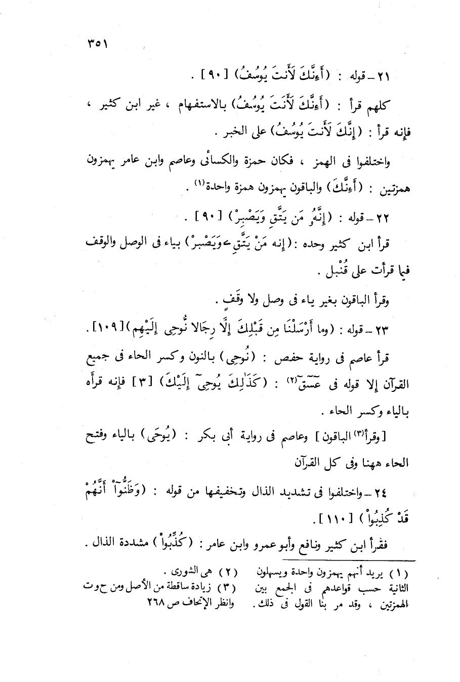 كلهم قَرَأَ / أءنك لأَنْت يُوسُف / بالاستفهام غير ابْن كثير فَإِنَّهُ قَرَأَ / إِنَّك لأَنْت يُوسُف / على الْخَبَر