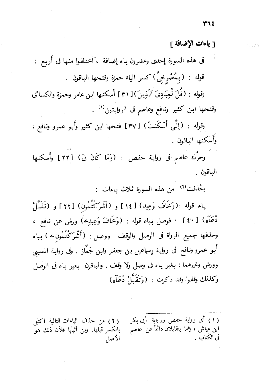 يَاء قَوْله {وَخَافَ وَعِيد} 14 و {أشركتمون} 22 و {وَتقبل دُعَاء} 40