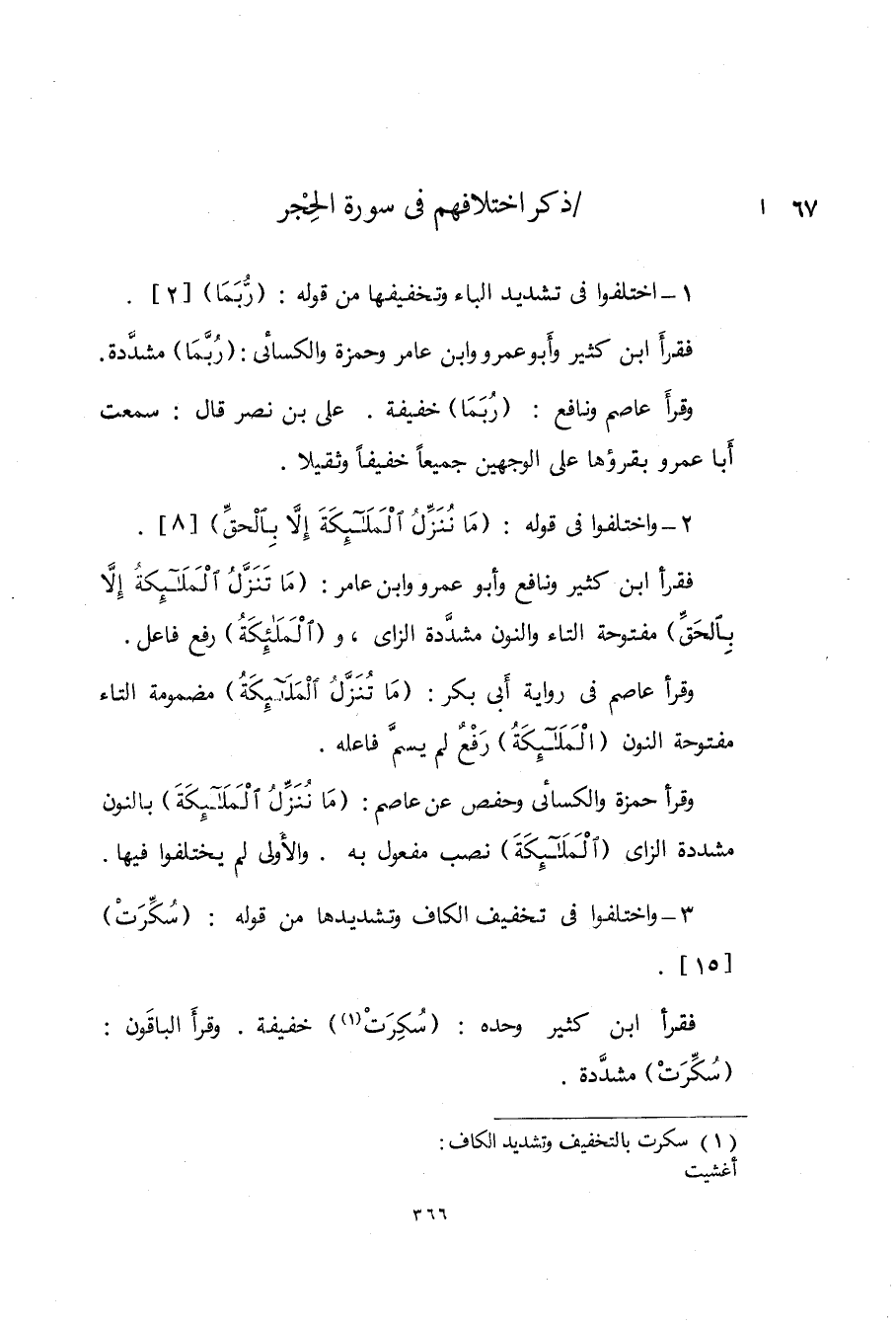 3 - وَاخْتلفُوا فى تَخْفيف الْكَاف وتشديدها من قَوْله {سكرت} 15