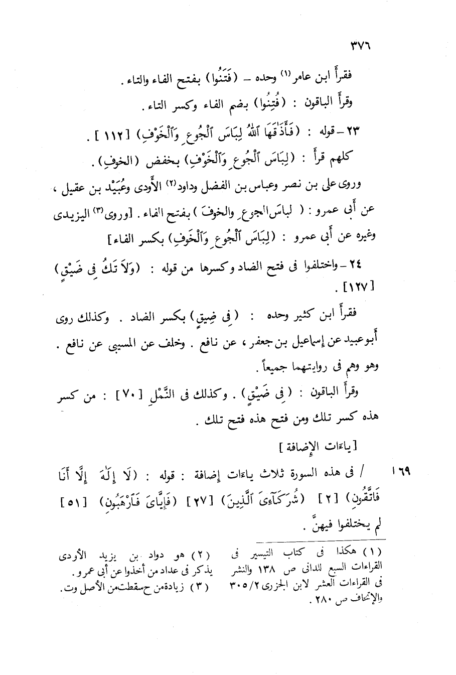 24 - وَاخْتلفُوا فى فتح الضَّاد وَكسرهَا من قَوْله {وَلَا تَكُ فِي ضيق} 127