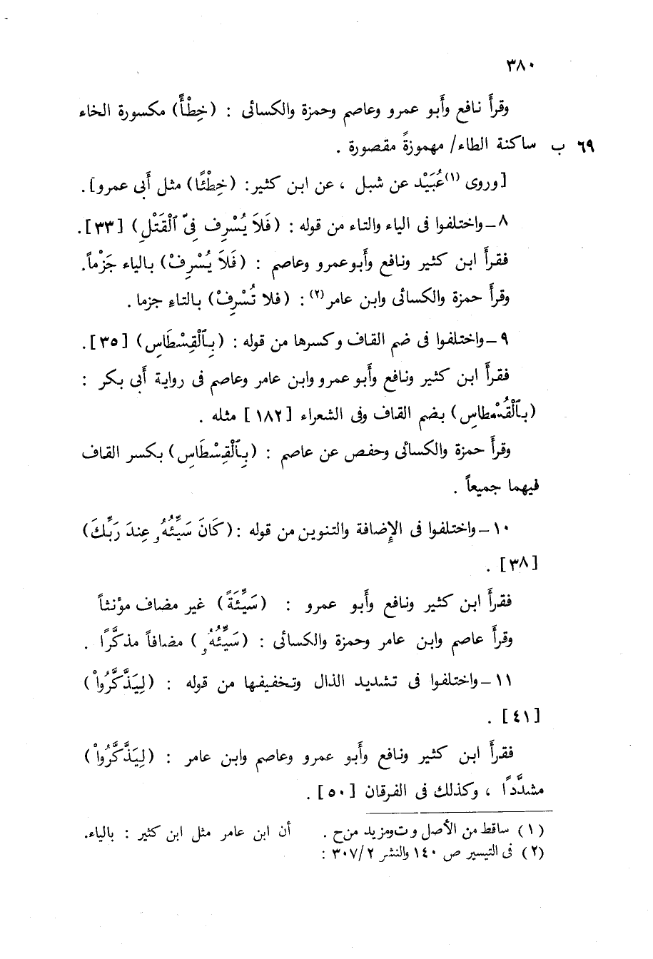 9 - وَاخْتلفُوا فى ضم الْقَاف وَكسرهَا من قَوْله {بالقسطاس} 35
