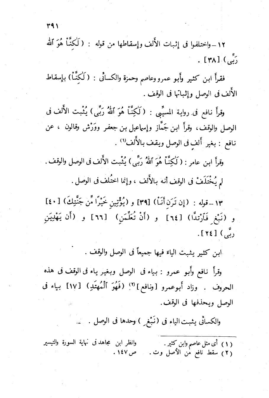 12 - وَاخْتلفُوا فى إِثْبَات الْألف وإسقاطها من قَوْله {لَكِن هُوَ الله رَبِّي} 38