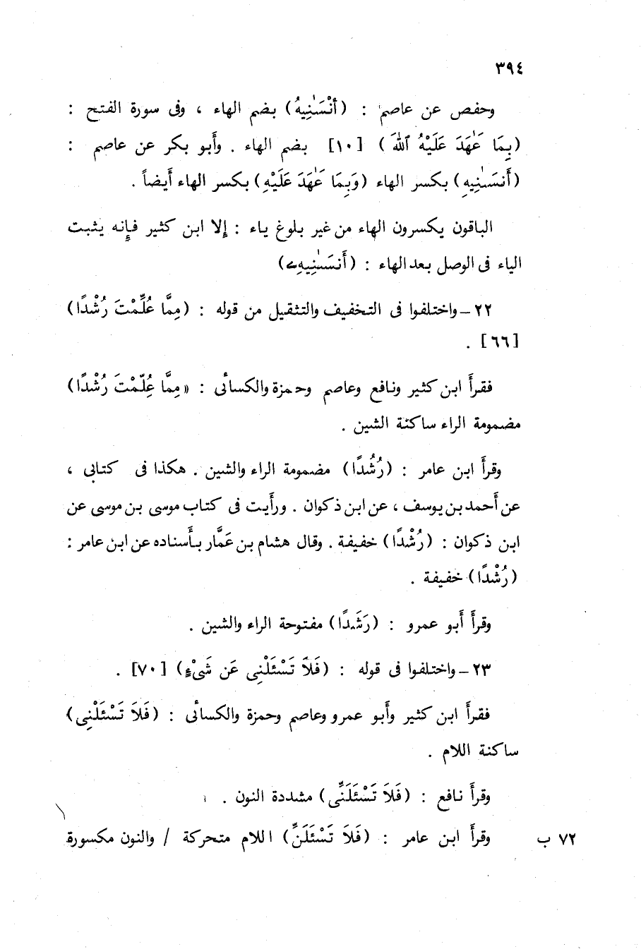 وَحَفْص عَن عَاصِم / أنسنيه / بِضَم الْهَاء وفى سُورَة الْفَتْح / بِمَا عهد عَلَيْهِ الله / 10 بِضَم الْهَاء