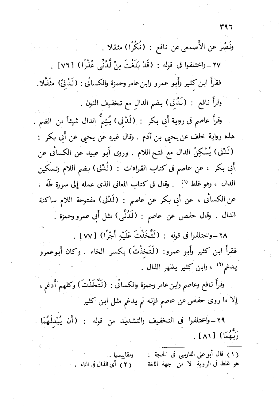 وَقَالَ فى كتاب الْمعَانى الذى عمله إِلَى سُورَة طه عَن الكسائى عَن أَبى بكر عَن عَاصِم {لدني} مَفْتُوحَة اللَّام سَاكِنة الدَّال