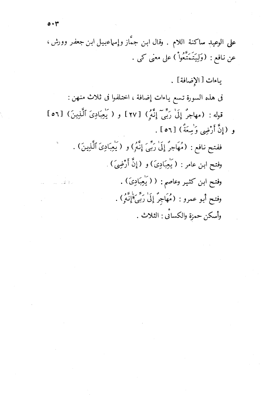 فى هَذِه السُّورَة تسع ياءات إِضَافَة اخْتلفُوا فى ثَلَاث مِنْهُنَّ