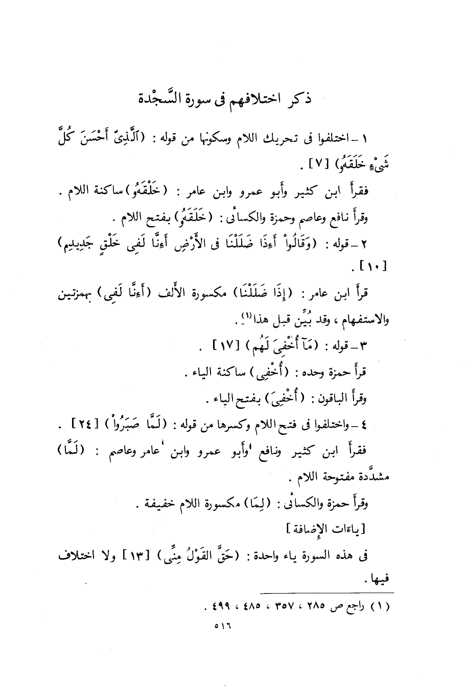 ذكر اخْتلَافهمْ فى سُورَة السَّجْدَة