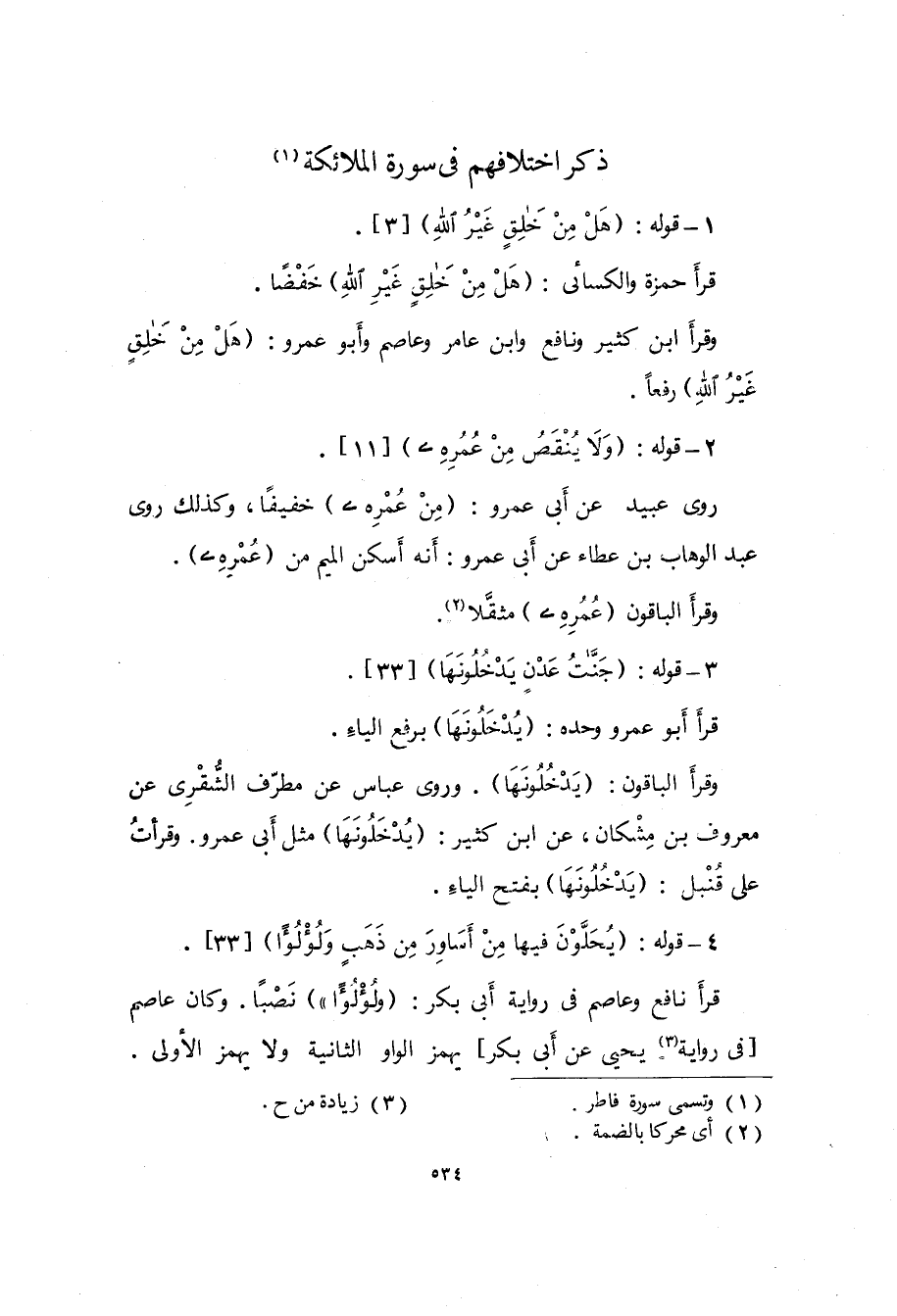 ذكر اخْتلَافهمْ فى سُورَة الْمَلَائِكَة