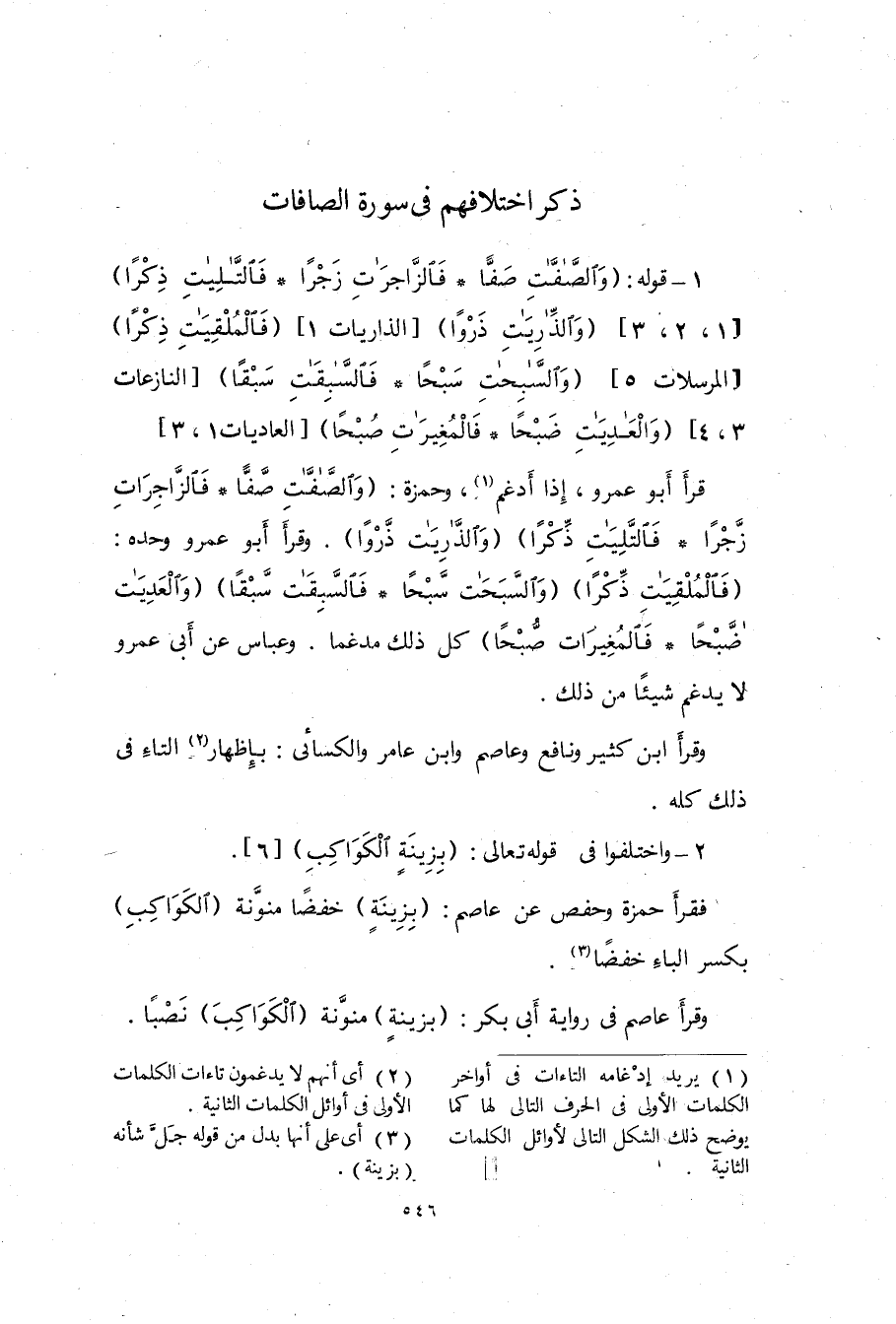 1 - قَوْله {وَالصَّافَّات صفا} 1 {فالزاجرات زجرا} 2 {فالتاليات ذكرا} 3 {والذاريات ذَروا} الذاريات 1 {فالملقيات ذكرا} المرسلات 5 {والسابحات سبحا} 3 {فالسابقات سبقا} النازعات 4 {وَالْعَادِيات ضَبْحًا} 1 {فالمغيرات صبحا} العاديات 3