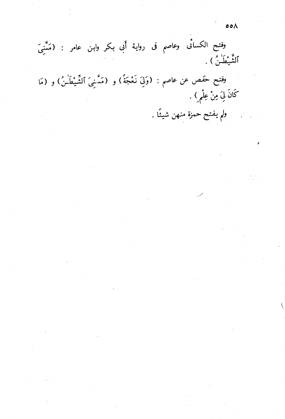وَفتح الكسائى وَعَاصِم فى رِوَايَة أَبى بكر وَابْن عَامر / مسنى الشيطن /