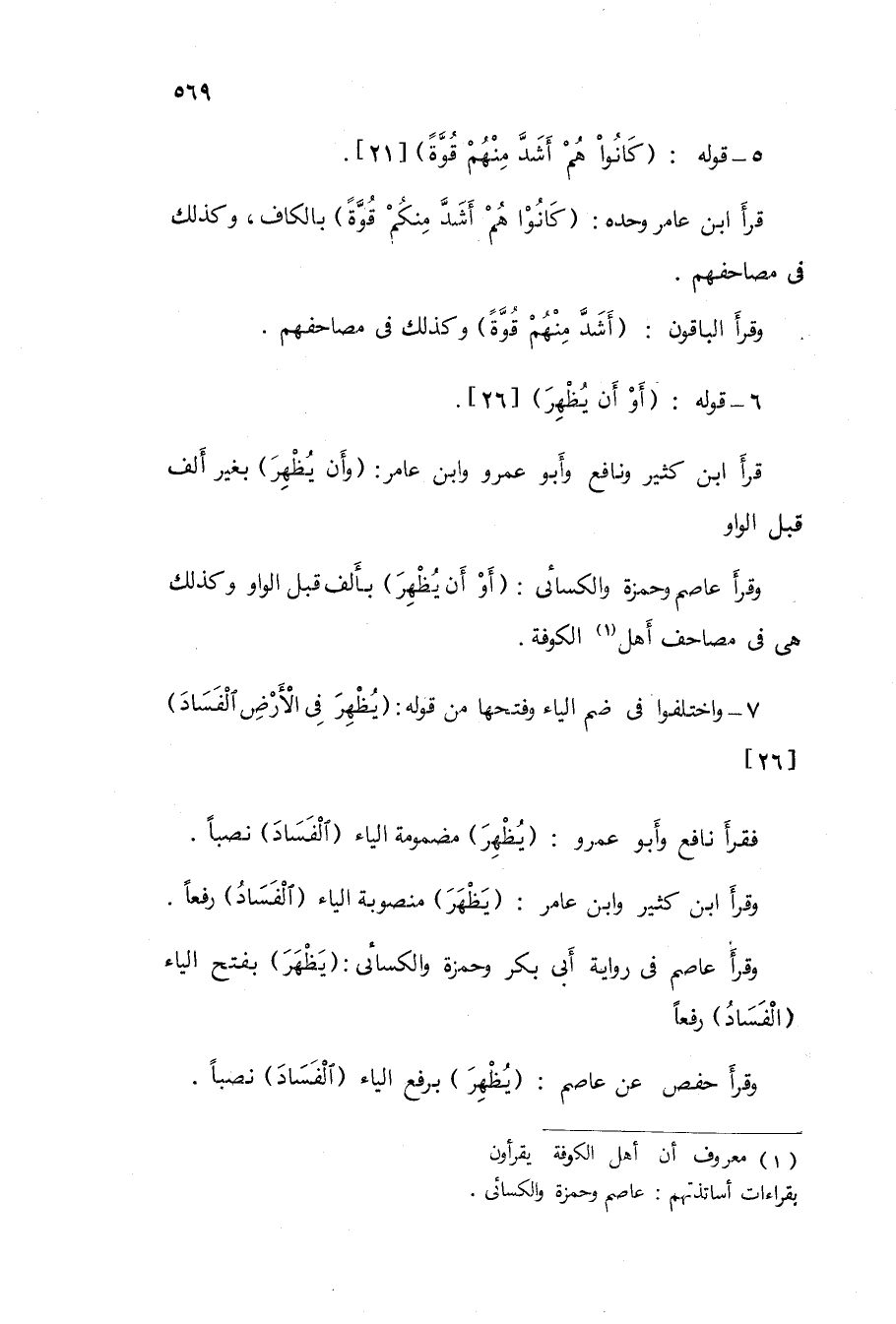 قَرَأَ ابْن عَامر وَحده / كَانُوا هم أَشد مِنْكُم قُوَّة / بِالْكَاف وَكَذَلِكَ فى مصاحفهم