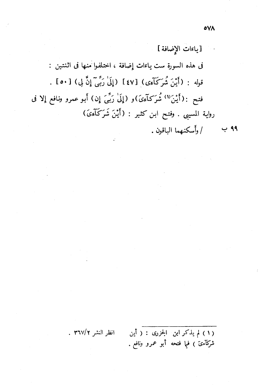 فى هَذِه السُّورَة سِتّ ياءات إِضَافَة اخْتلفُوا مِنْهَا فى اثْنَتَيْنِ