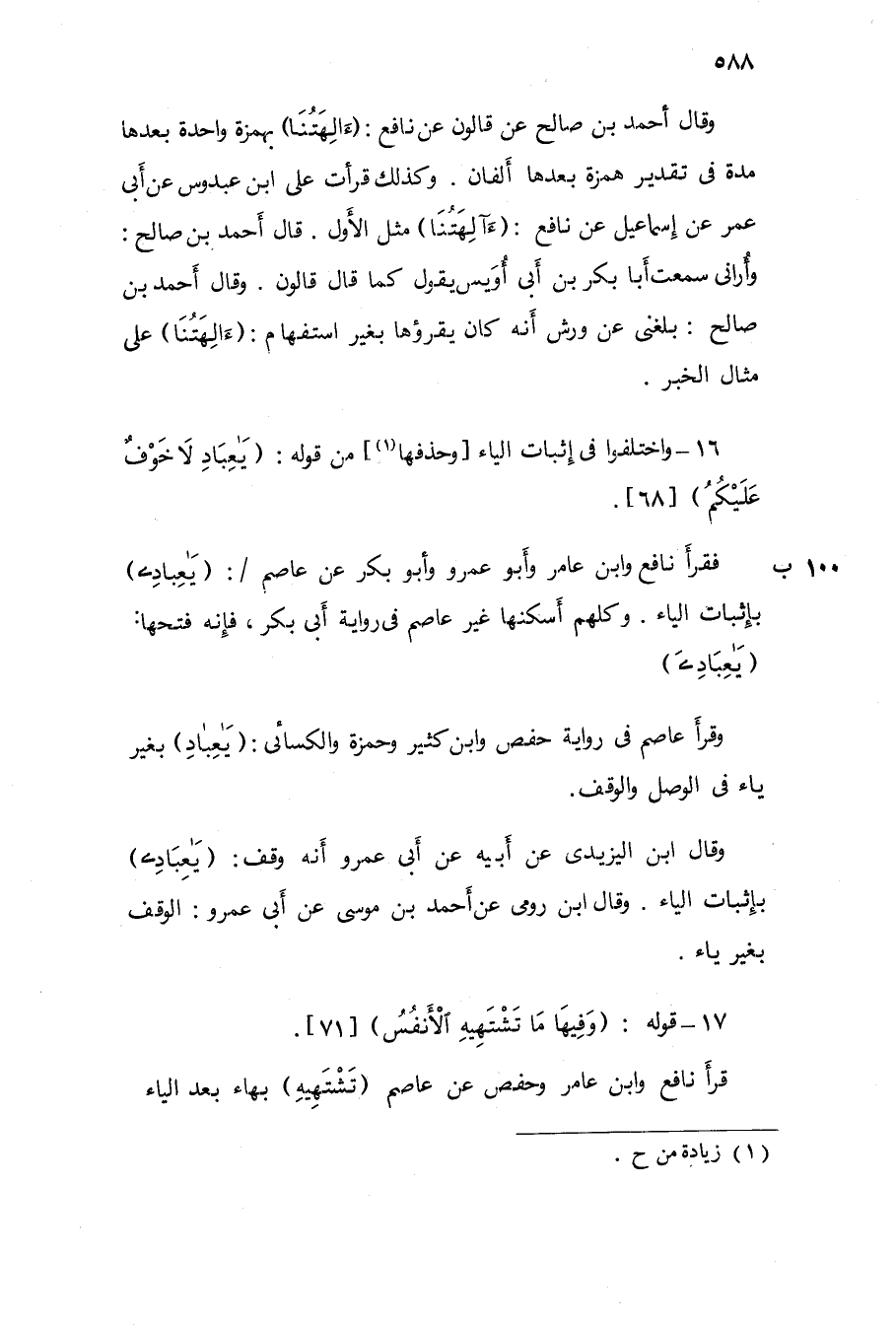 16 - وَاخْتلفُوا فى إِثْبَات الْيَاء وحذفها من قَوْله {يَا عباد لَا خوف عَلَيْكُم} 68