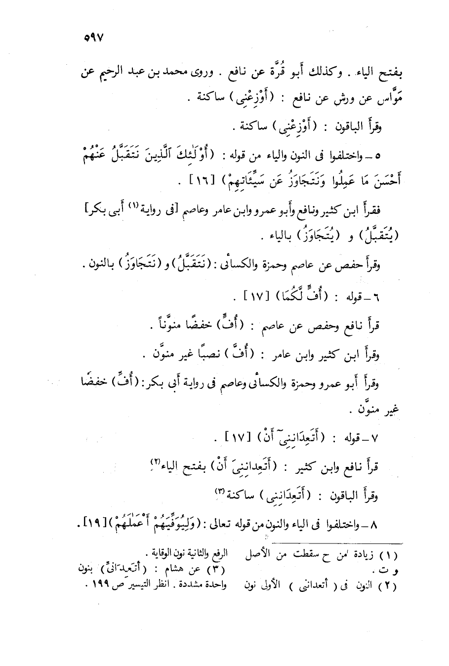 5 - وَاخْتلفُوا فى النُّون وَالْيَاء من قَوْله {أُولَئِكَ الَّذين نتقبل عَنْهُم أحسن مَا عمِلُوا ونتجاوز عَن سيئاتهم} 16