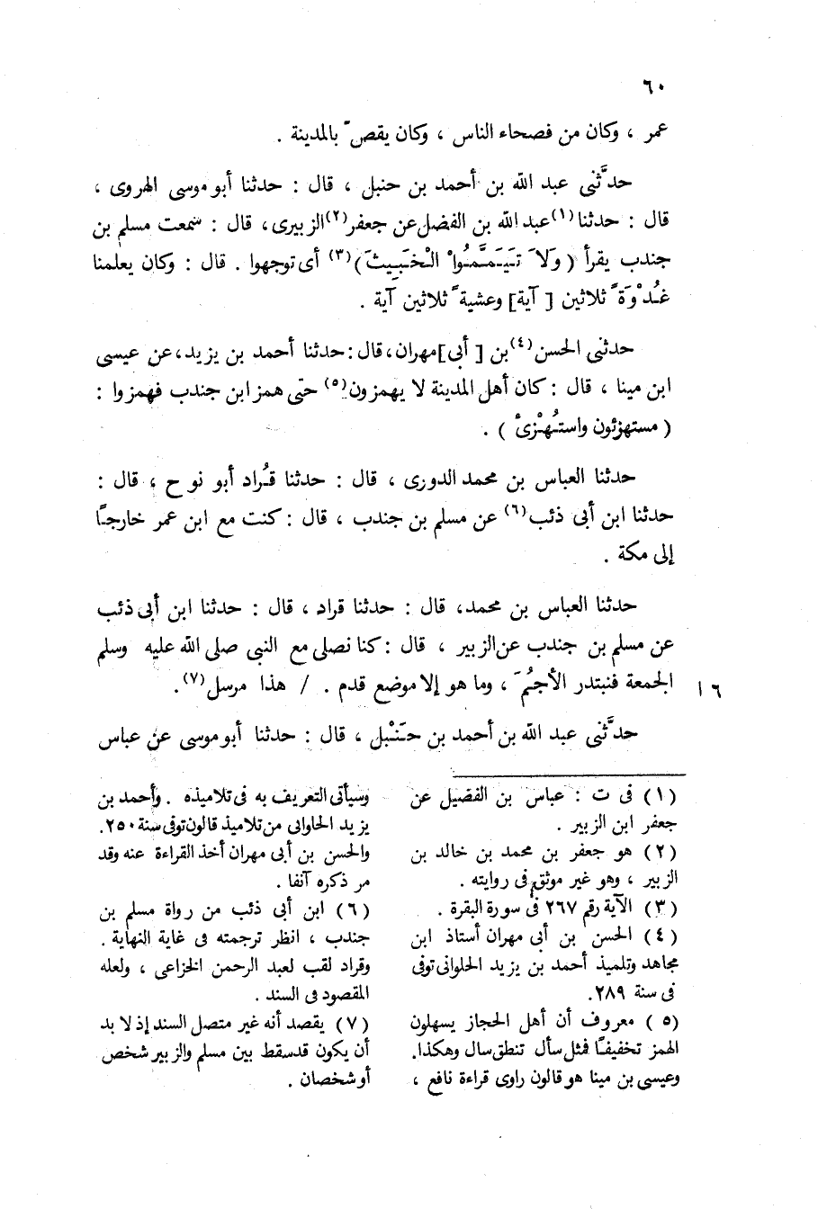 حَدثنَا الْعَبَّاس بن مُحَمَّد الدوري قَالَ حَدثنَا قراد أَبُو نوح قَالَ حَدثنَا ابْن أبي ذِئْب عَن مُسلم بن جُنْدُب قَالَ كنت مَعَ ابْن عمر خَارِجا إِلَى مَكَّة