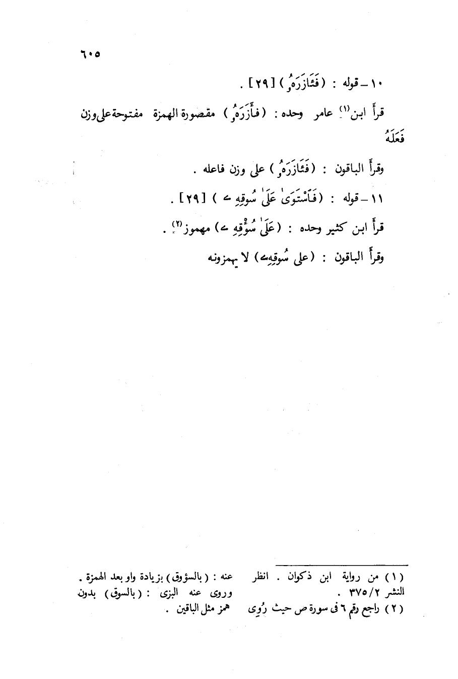 قَرَأَ ابْن كثير وَحده / على سؤقه / مَهْمُوز