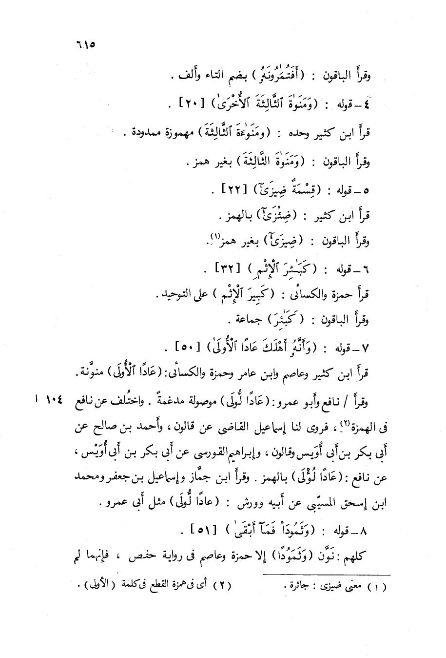 وَاخْتلف عَن نَافِع فى الْهمزَة فروى لنا إِسْمَاعِيل القاضى عَن قالون وَأحمد بن صَالح عَن أَبى بكر بن أَبى أويس وقالون وَإِبْرَاهِيم القورسى عَن أَبى بكر ابْن أَبى أويس عَن نَافِع / عادا لؤلى / بِالْهَمْز