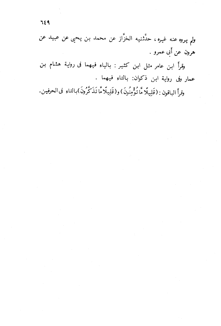 وَقَرَأَ الْبَاقُونَ {قَلِيلا مَا تؤمنون} و {قَلِيلا مَا تذكرُونَ} بِالتَّاءِ فى الحرفين