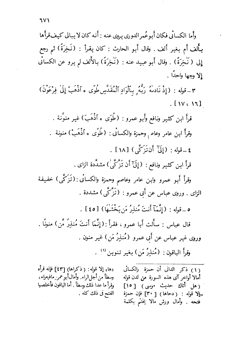قَرَأَ ابْن كثير وَنَافِع وَأَبُو عَمْرو {طوى اذْهَبْ} غير منونة