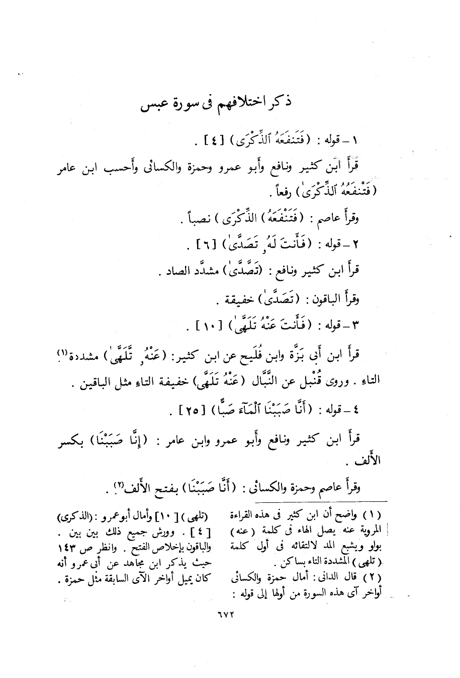 ذكر اخْتلَافهمْ فى سُورَة عبس