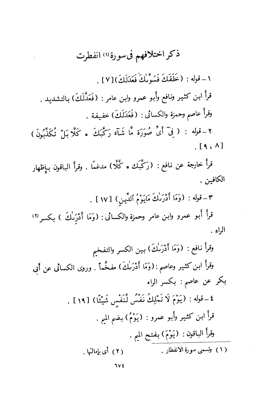ذكر اخْتلَافهمْ فى سُورَة انفطرت