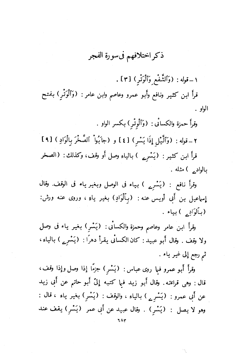 ذكر اخْتلَافهمْ فى سُورَة الْفجْر