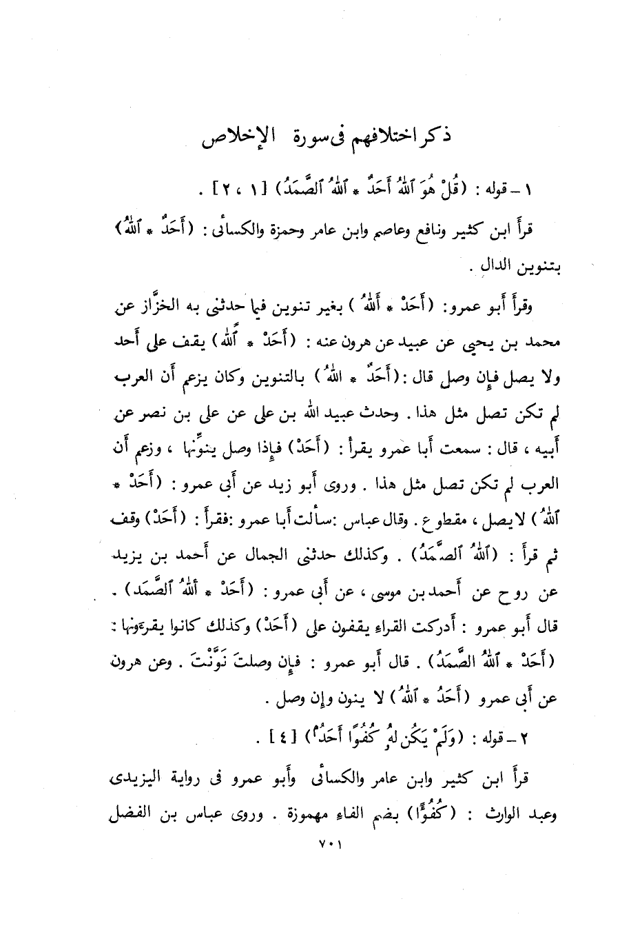 ذكر اخْتلَافهمْ فى سُورَة الْإِخْلَاص