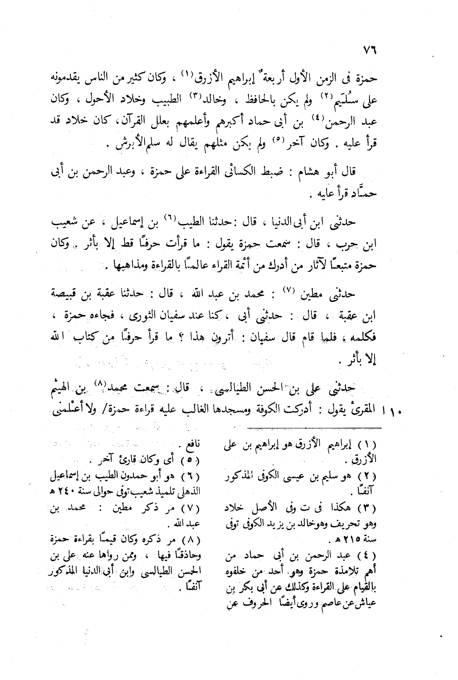 حَدثنِي عَليّ بن الْحسن قَالَ قَالَ مُحَمَّد بن الْهَيْثَم وَاحْتج من عَابَ قِرَاءَة حَمْزَة بِعَبْد الله بن إِدْرِيس أَنه طعن فِيهَا وَإِنَّمَا كَانَ سَبَب هَذَا أَن رجلا مِمَّن قَرَأَ على سليم حضر مجْلِس ابْن إِدْرِيس عبد الله فَقَرَأَ فَسمع ابْن إِدْرِيس ألفاظا فِيهَا