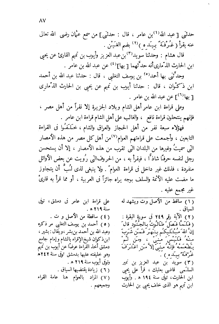 وعَلى قِرَاءَة ابْن عَامر أهل الشَّام وبلاد الجزيرة إِلَّا نَفرا من أهل مصر فَإِنَّهُم ينتحلون قِرَاءَة نَافِع وَالْغَالِب على أهل الشَّام قِرَاءَة ابْن عَامر