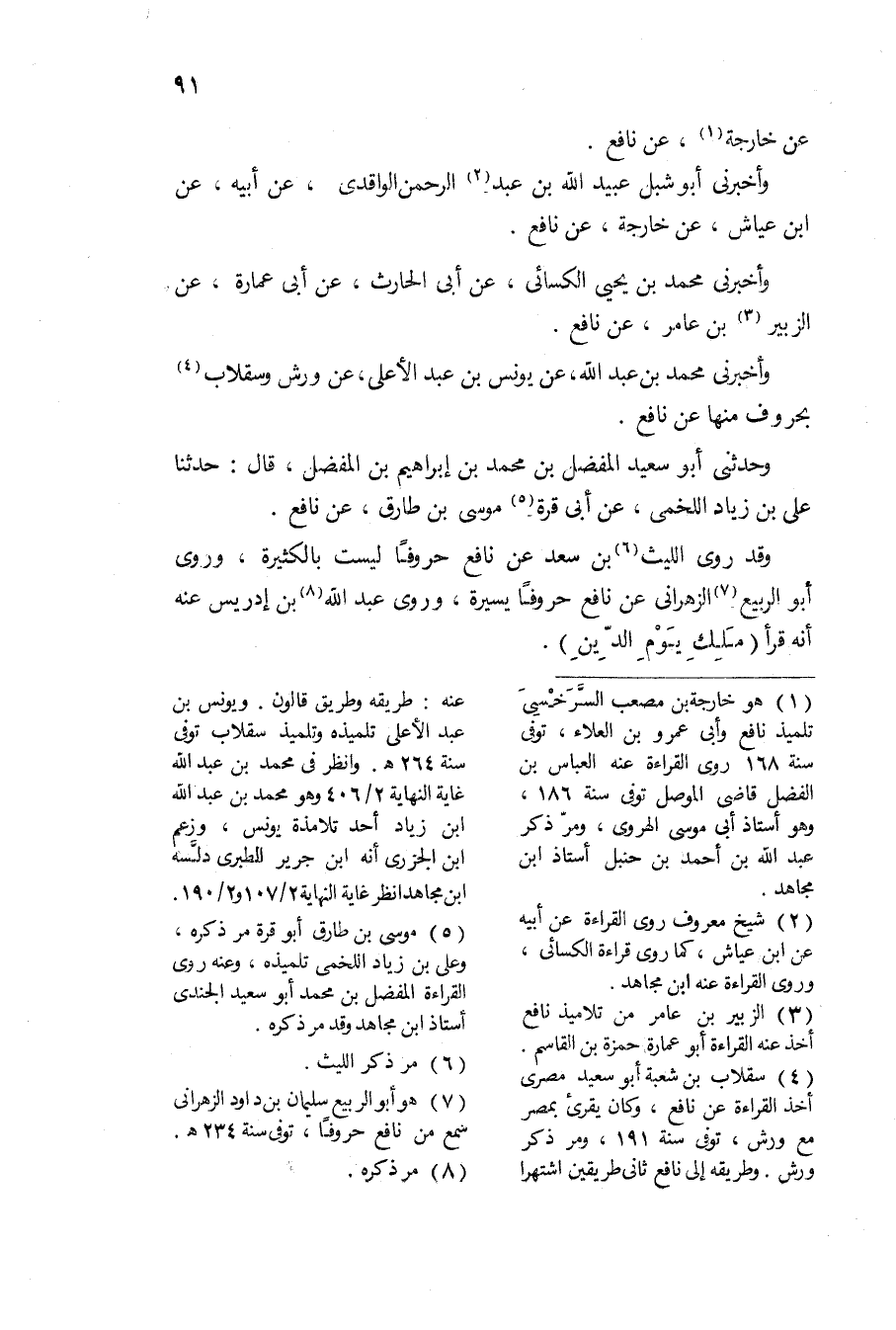وَأَخْبرنِي عبد الله بن أَحْمد بن حَنْبَل عَن أبي مُوسَى الْهَرَوِيّ عَن عَبَّاس بن الْفضل عَن خَارِجَة عَن نَافِع بِبَعْض الْحُرُوف