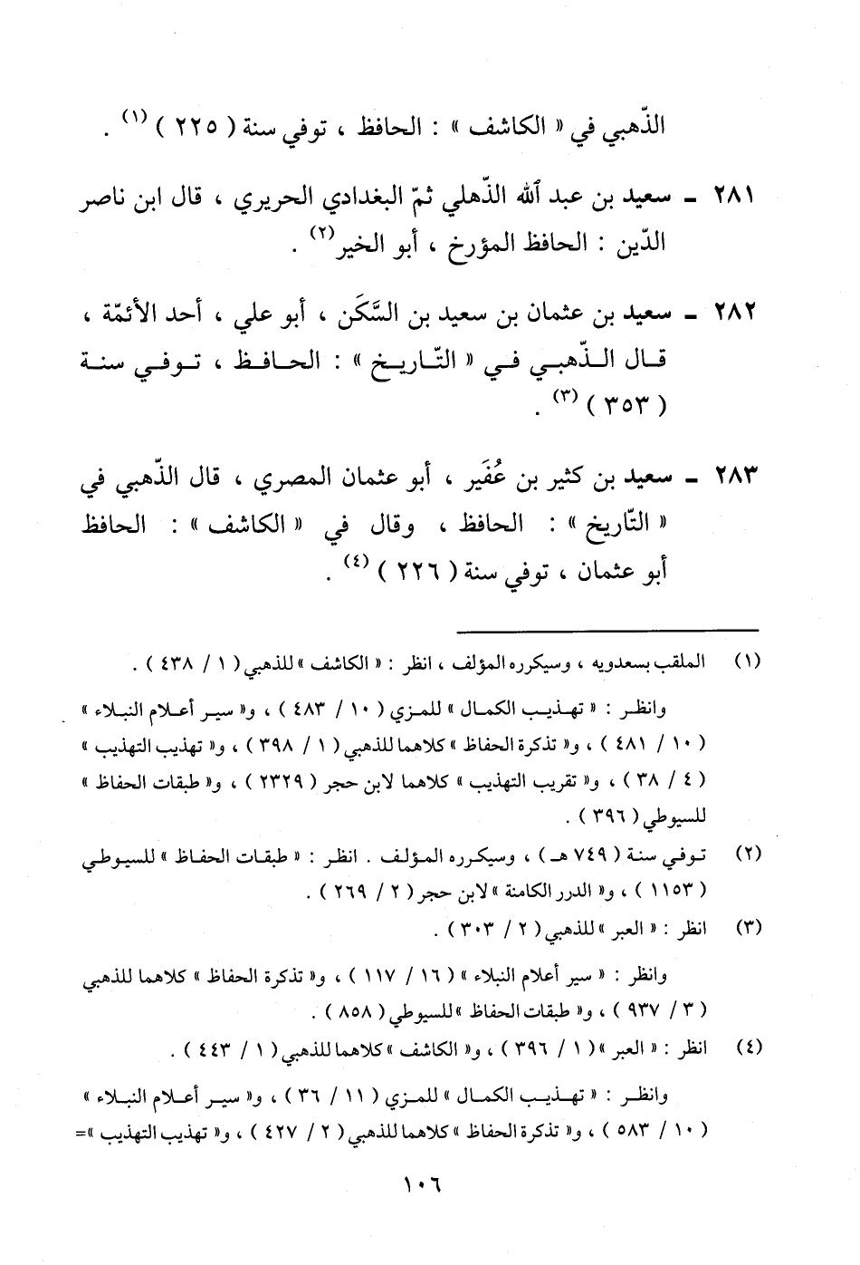 283 - سعيد بن كثير بن عُفَير، أبو عثمان المصري، قال الذّهبي في "التّاريخ": الحافظ، وقال في "الكاشف": الحافظ أبو عثمان، توفي سنة (226) (¬4).