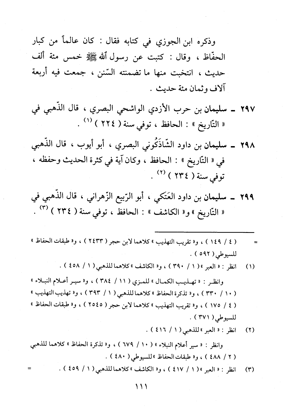 297 - سليمان بن حرب الأزدي الواشحي البصري، قال الذّهبي في "التّاريخ": الحافظ، توفي سنة (224) (¬1).