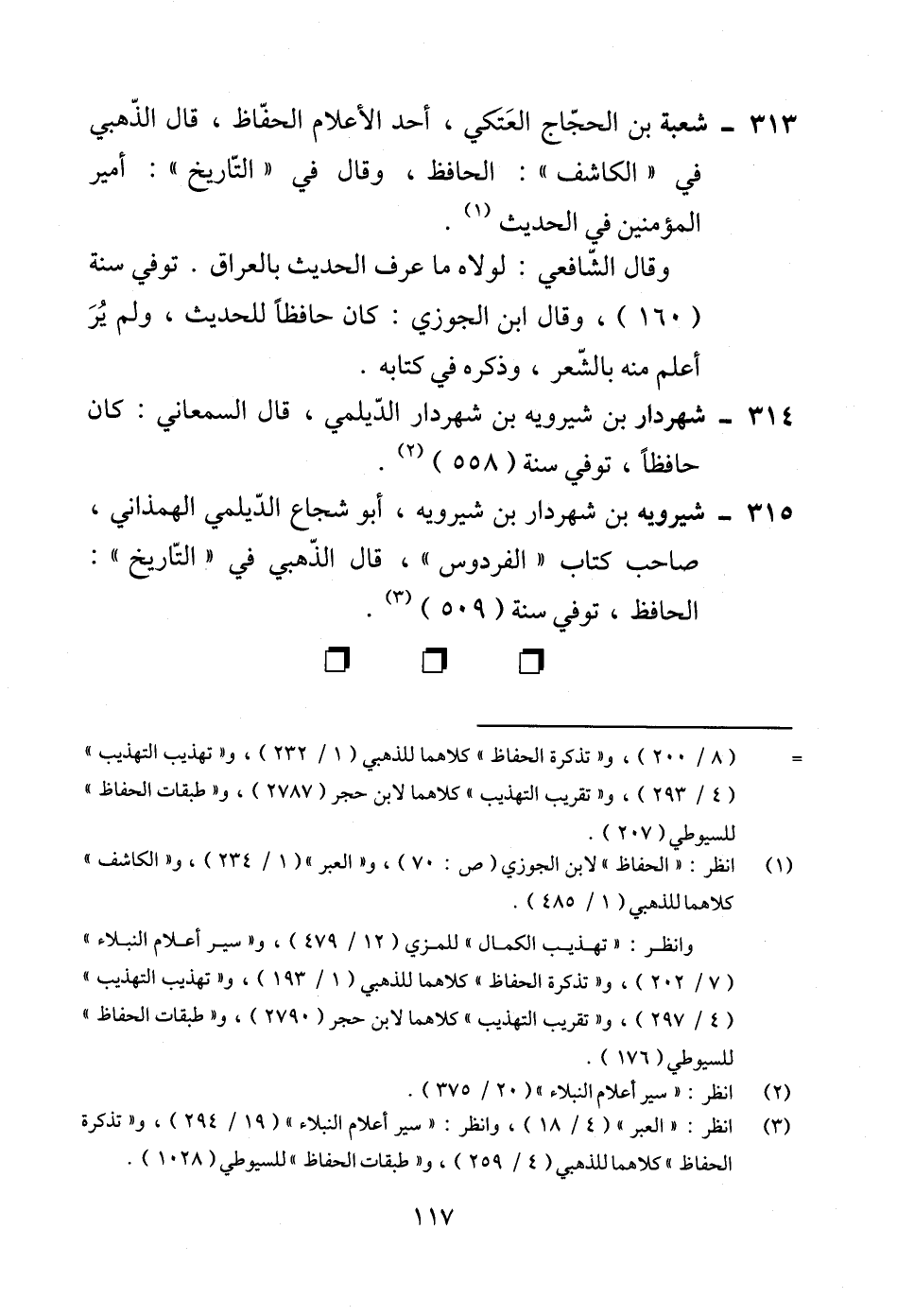 313 - شعبة بن الحجّاج العَتكي، أحد الأعلام الحفّاظ، قال الذّهبي في "الكاشف": الحافظ، وقال في "التّاريخ": أمير المؤمنين في الحديث (¬1).