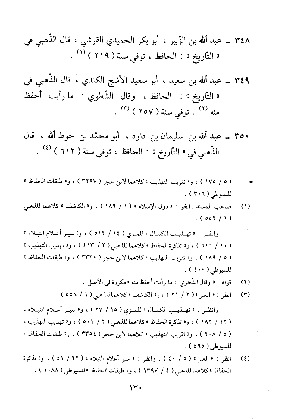 348 - عبد الله بن الزّبير، أبو بكر الحميدي القرشي، قال الذّهبي في "التّاريخ": الحافظ، توفي سنة (219) (¬1).