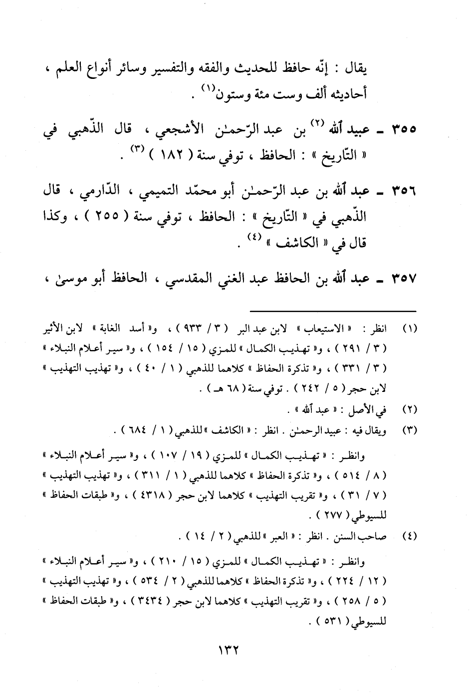 356 - عبد الله بن عبد الرحمن أبو محمّد التميمي، الدّارمي، قال الذّهبي في "التّاريخ": الحافظ، توفي سنة (255)، وكذا قال في "الكاشف" (¬4).