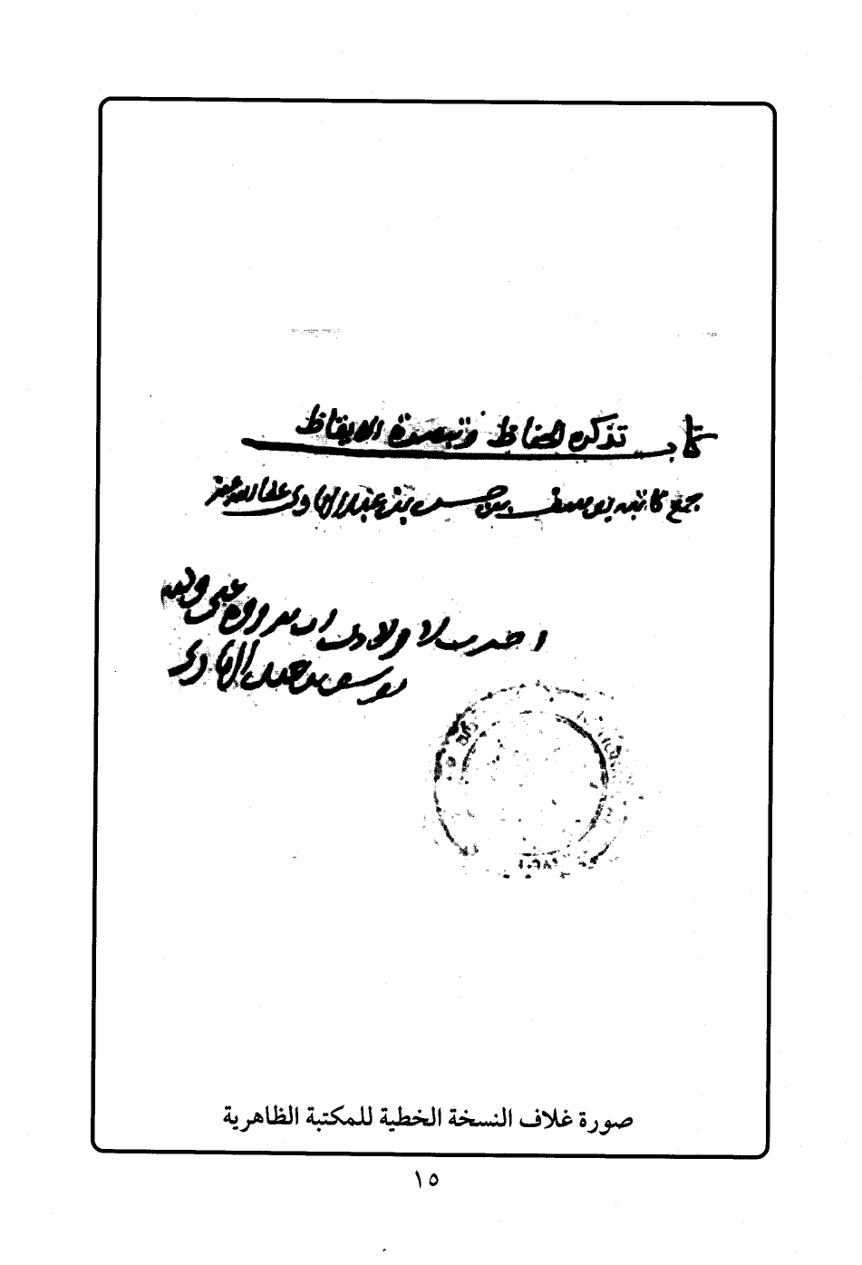 صورة غلاف النسخة الخطية للمكتبة الظاهرية