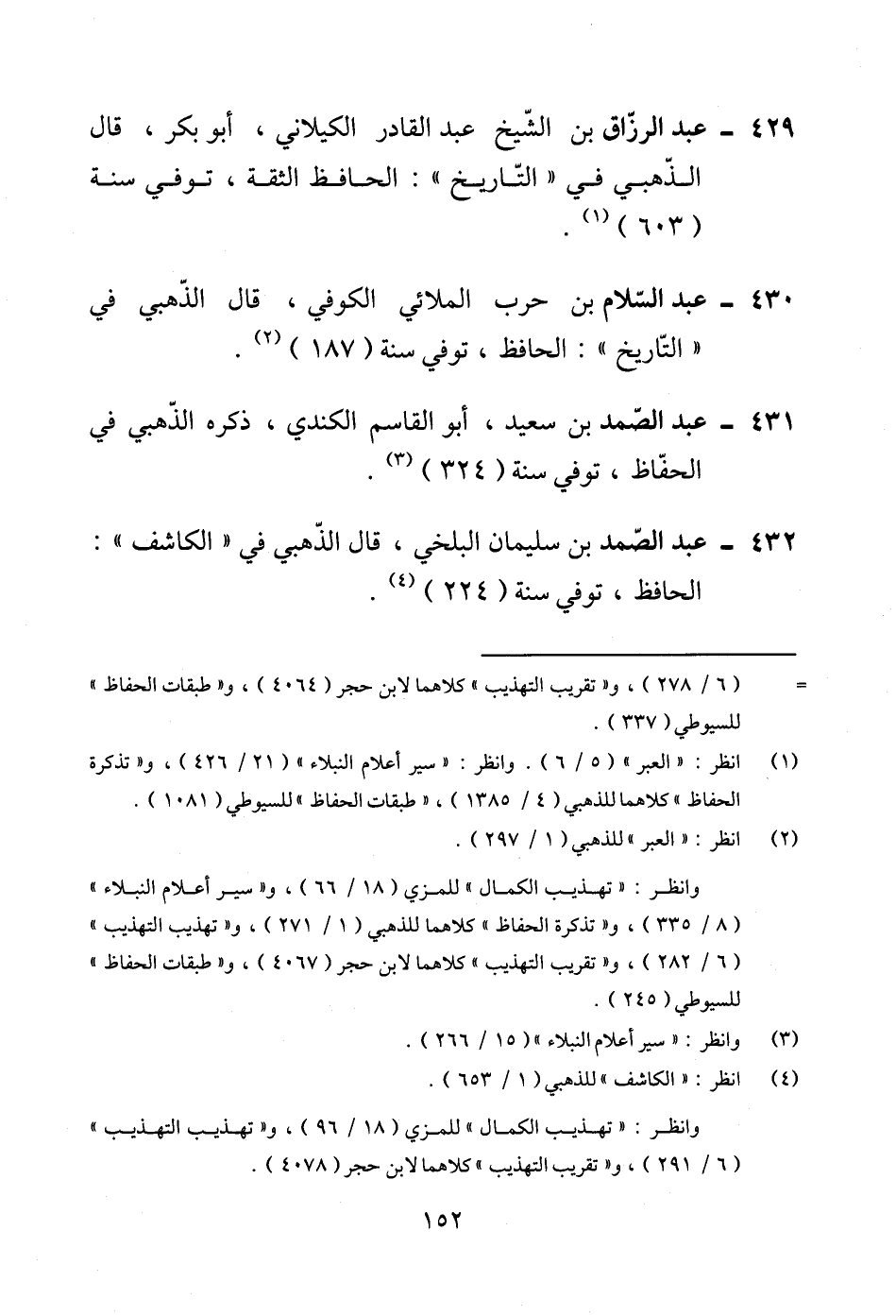 429 - عبد الرزّاق بن الشّيخ عبد القادر الكيلاني، أبو بكر، قال الذّهبي في "التّاريخ": الحافظ الثقة، توفي سنة (603) (¬1).