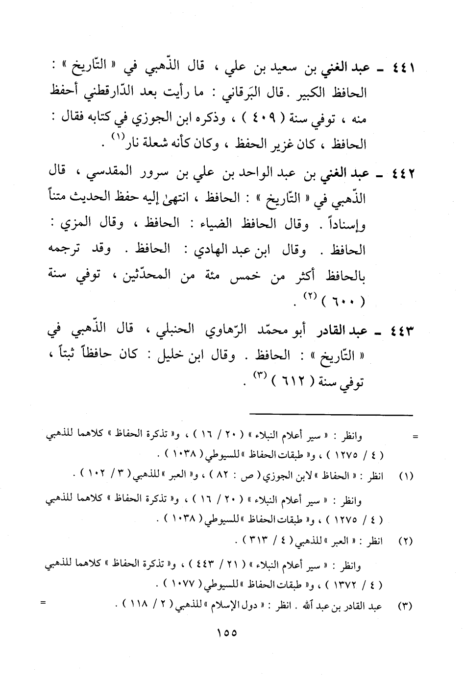443 - عبد القادر أبو محمّد الرّهاوي الحنبلي، قال الذّهبي في "التّاريخ": الحافظ. وقال ابن خليل: كان حافظًا ثبتًا، توفي سنة (612) (¬3).