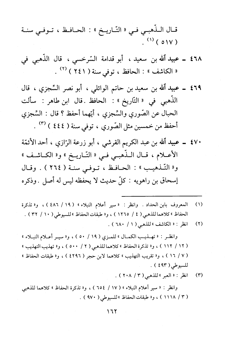 470 - عبيد الله بن عبد الكريم القرشي، أبو زرعة الرّازي، أحد الأئمة الأعلام، قال الذّهبي في "التّاريخ" و"الكاشف" و"التّذهيب": الحافظ، توفي سنة (264). وقال إسحاق بن راهويه: كلّ حديث لا يحفظه ليس له أصل. وذكره