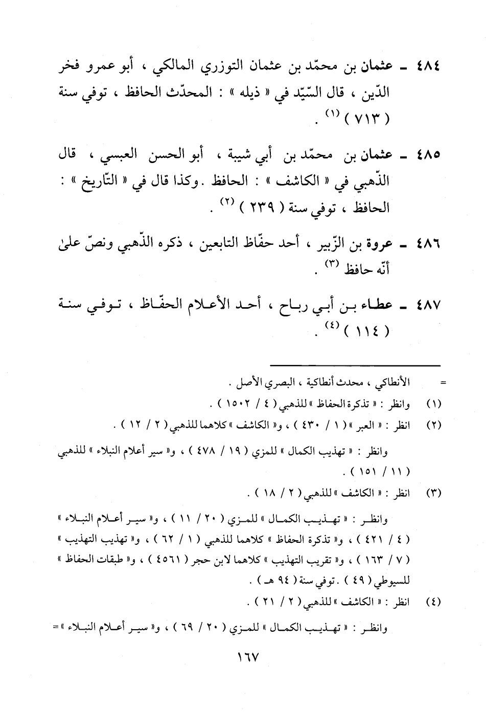 484 - عثمان بن محمّد بن عثمان التوزري المالكي، أبو عمرو فخر الدّين، قال السّيّد في "ذيله": المحدّث الحافظ، توفي سنة (713) (¬1).